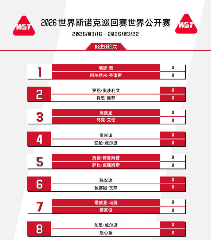 2026年斯诺克玉山世界公开赛,是本赛季倒数第三项赛事。本次比赛,中国斯诺克军团在新科世锦赛冠军赵心童的引领下,继续有非常出色的发挥,前三个比赛日结束后,共有赵心童、傅家俊、吴宜泽、张安达、周跃龙等5名中国选手打进16强。