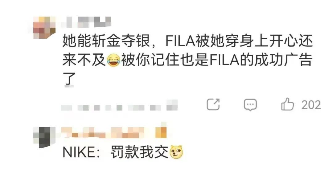 有网友调侃:“她能斩金夺银,FILA被她穿身上开心还来不及,被你记住也是FILA的成功广告了。