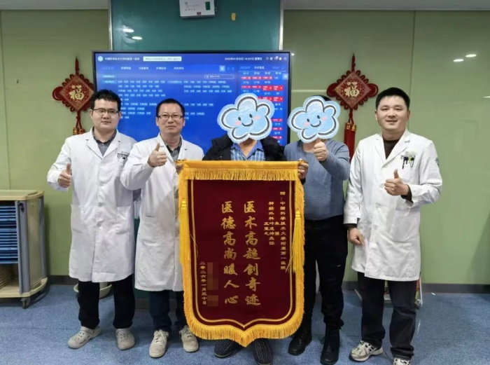 出院当天,尹大爷精神矍铄,不仅能自主行走、正常交流,视力也恢复到了满意的状态。“本来以为这么大年纪,又有这么多毛病,很难挺过来,还好有你们陪我闯过难关,不仅把我的病治好了,还这么有耐心,真的太感谢了!”尹大爷的家人还特意送来锦旗,对医务人员表示感谢。